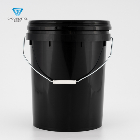 Factory Direct 20L Seau en plastique noir Poignée en fer Conteneur à couvercle robuste pour produits chimiques Personnalisation OEM disponible